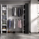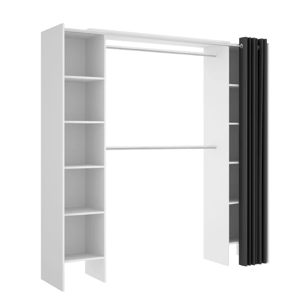 • Intimité et Protection : Un rideau en toile noire avec 12 œillets et une barre en aluminium à l'avant protège non seulement vos vêtements de la poussière et de la lumière, mais offre également de l'intimité en couvrant complètement vos affaires. Le système de fermeture facile permet un accès sans effort à tout moment.